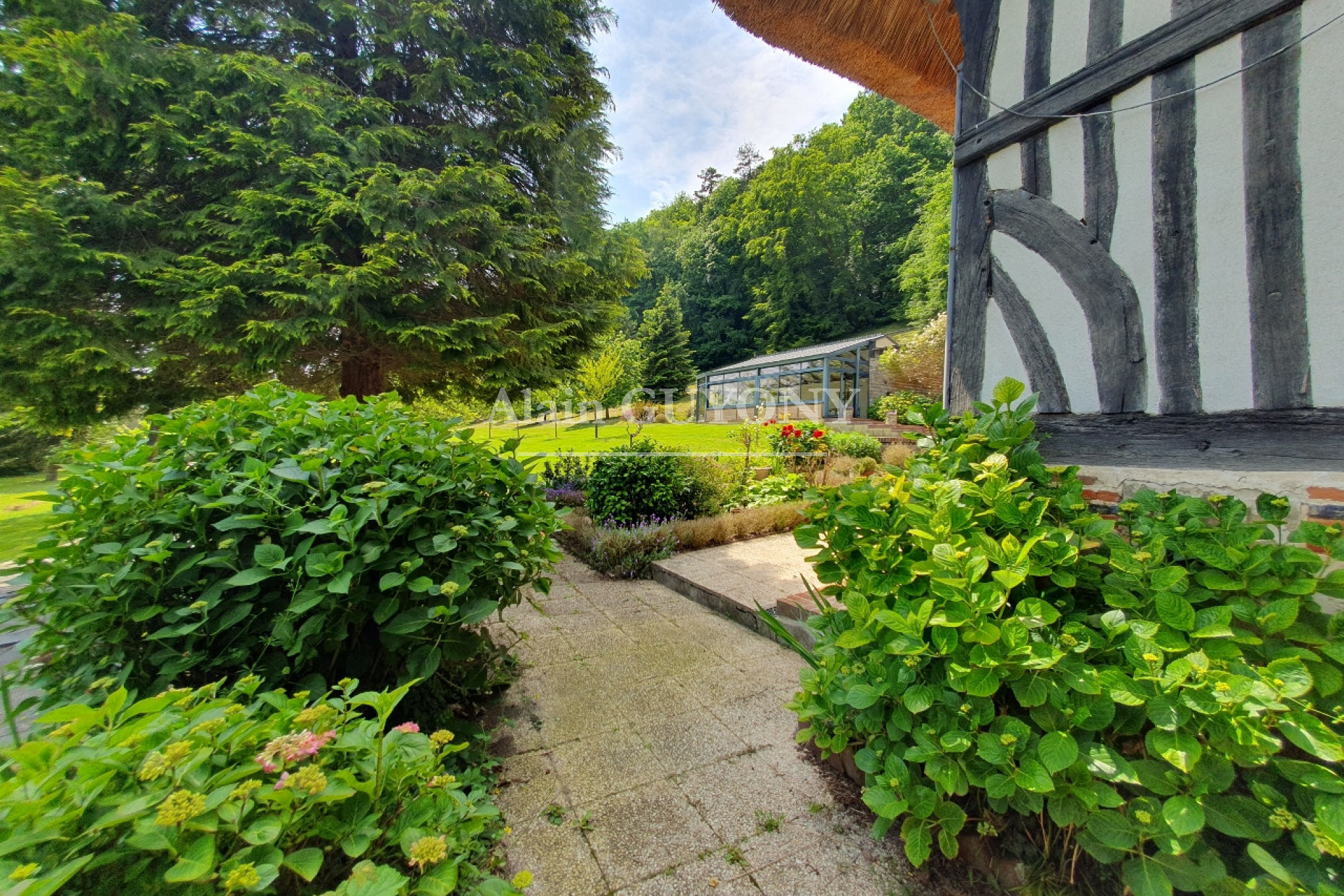 Alain GUYONY vous propose à la vente, en pleine campagne normande, cette charmante maison à colombages édifiée sur un vaste terrain de 5 172 m², idéalement située entre PONT L'ÉVÊQUE et LISIEUX.