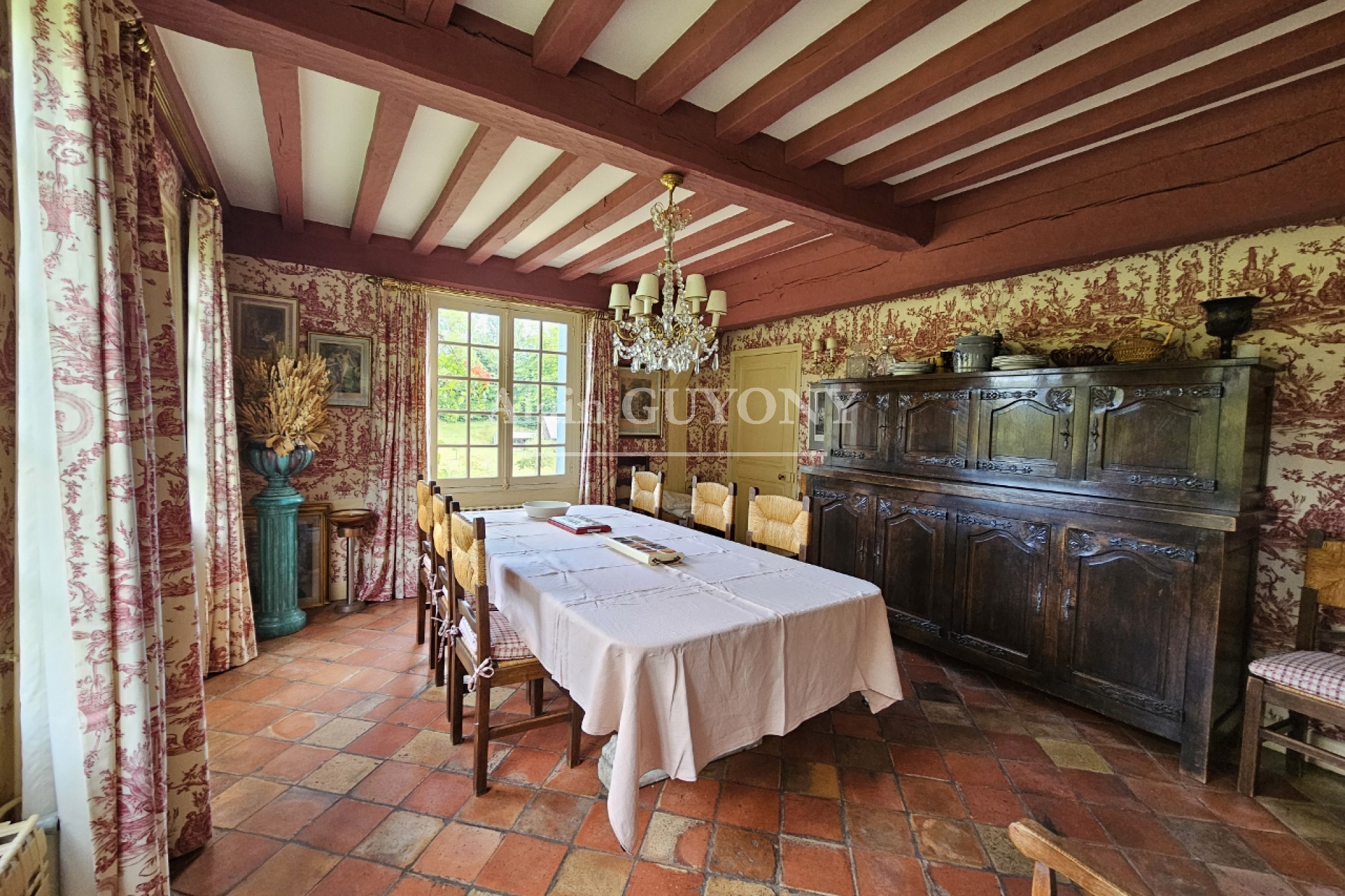 Alain GUYONY vous propose à la vente, à moins de 10 minutes de DEAUVILLE et à 5 minutes des plages, cette propriété normande de caractère s'étend sur 01ha48a07ca. Le terrain, entièrement clos et planté de diverses essences, notamment de pommiers et cerisiers, offre un cadre naturel remarquable, sans nuisances et à proximité immédiate des haras et infrastructures équestres de la région.
