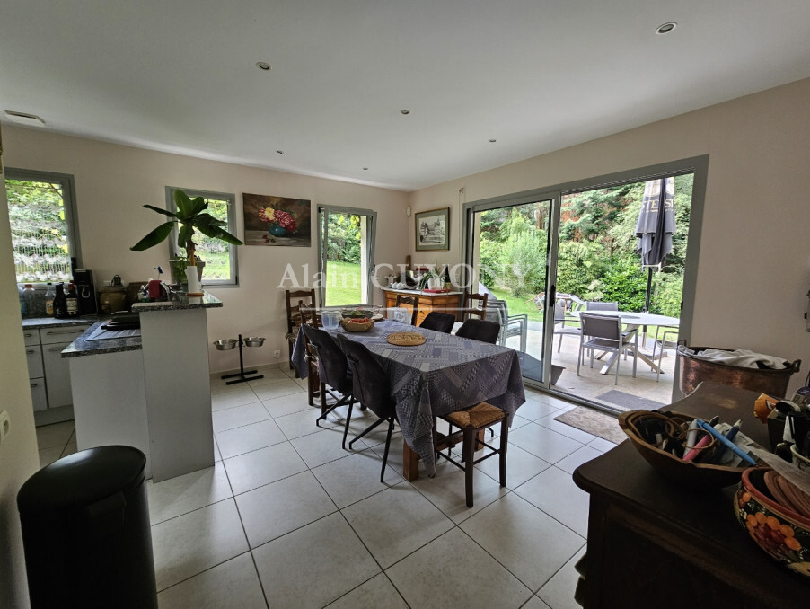 Au rez-de-chaussée, entrée, vaste séjour avec cheminée, cuisine ouverte, bureau, une chambre, salle de bains avec douche, cellier, dressing, 2 wc. A l'étage, mezzanine, 4 chambres, 2 salles d’eau, wc. Sous-sol (rez-de-jardin) : cave, pièce avec point d’eau.