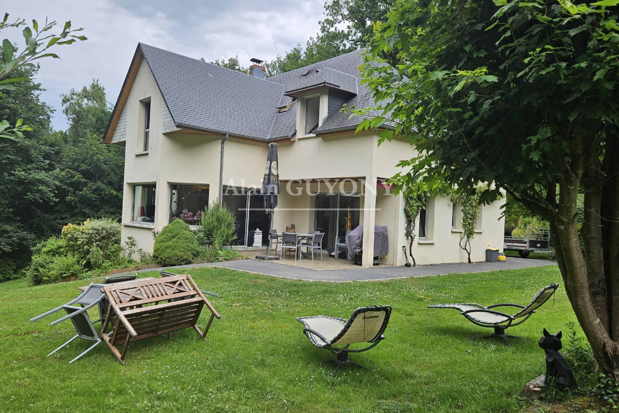 Alain GUYONY vous propose à la vente cette superbe maison contemporaine nichée dans un environnement privilégié, au cœur d’un domaine privé, calme et boisé, à seulement quelques minutes de DEAUVILLE et de PONT L'ÉVÊQUE. Offrant de généreux volumes, une luminosité remarquable et un confort de vie optimal, cette propriété ravira les amoureux de nature et d’espaces.