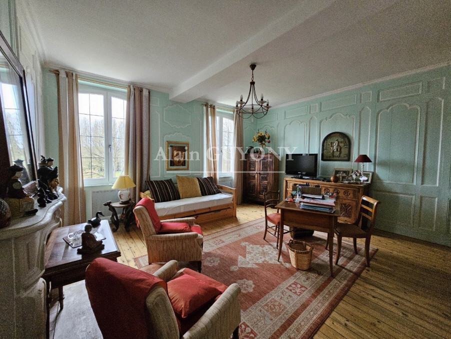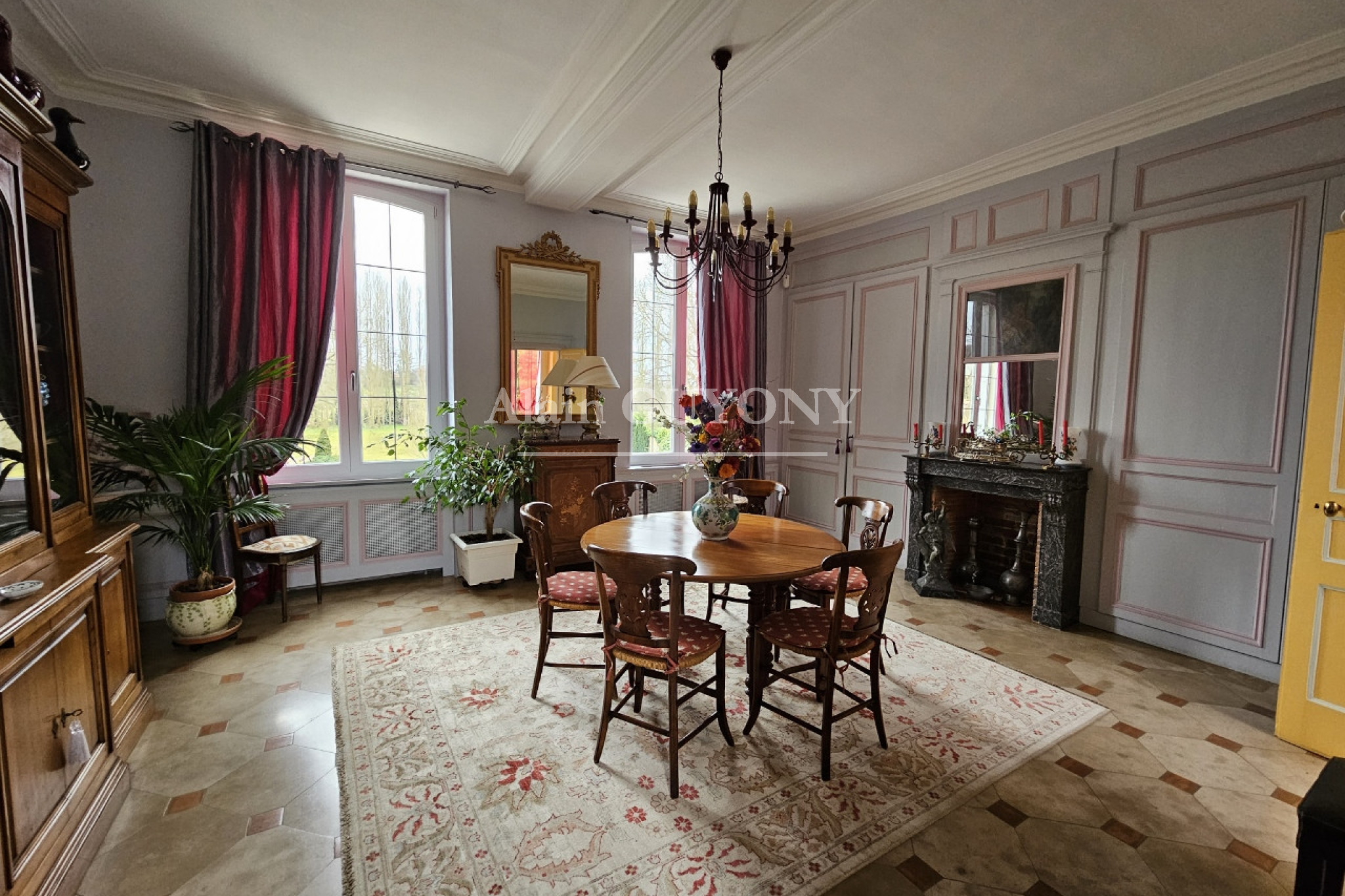 Alain GUYONY vous propose à la vente, en plein cœur d’un charmant village tous commerces à seulement 30 minutes de Deauville, une magnifique propriété du XVIIIe siècle, offrant une vue dégagée sur la campagne normande. Le manoir principal d’environ 300 m², entièrement rénové, séduit par ses volumes généreux et son authenticité : moulures, boiseries, parquets d’époque et cheminées dans chaque pièce. Cette demeure lumineuse et traversante est idéale pour accueillir une grande famille et des invités.